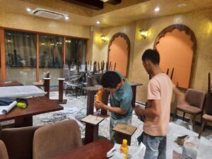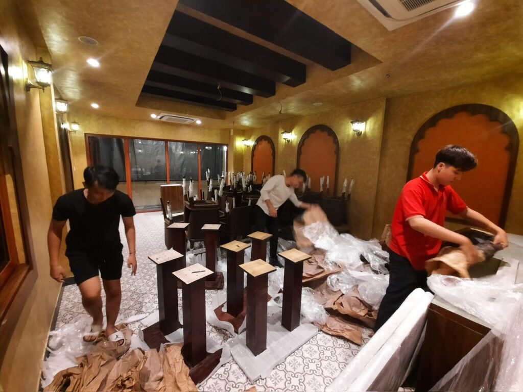 Công trình nhà hàng Ấn Độ quận 1 Hạng mục nội thất quầy bàn ghế, lam trần, vách cnc Thời gian hoàn thành 60 ngày.