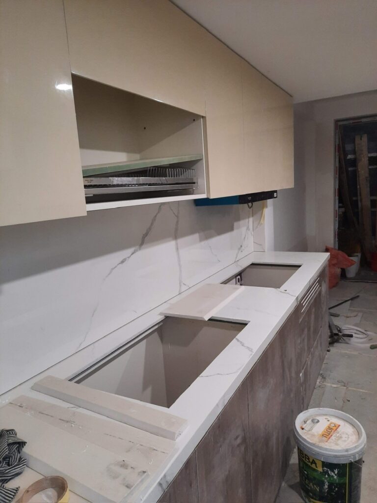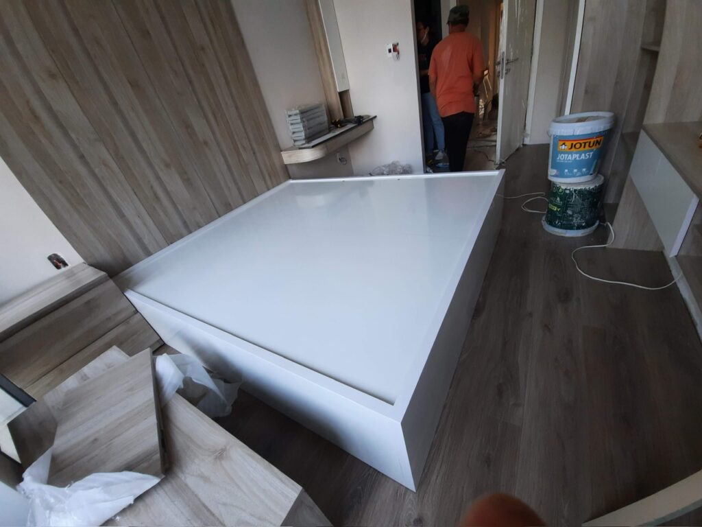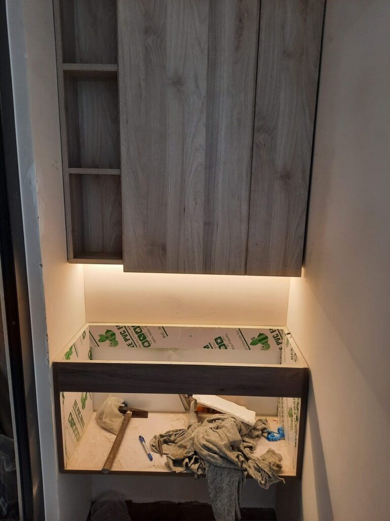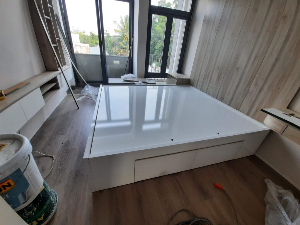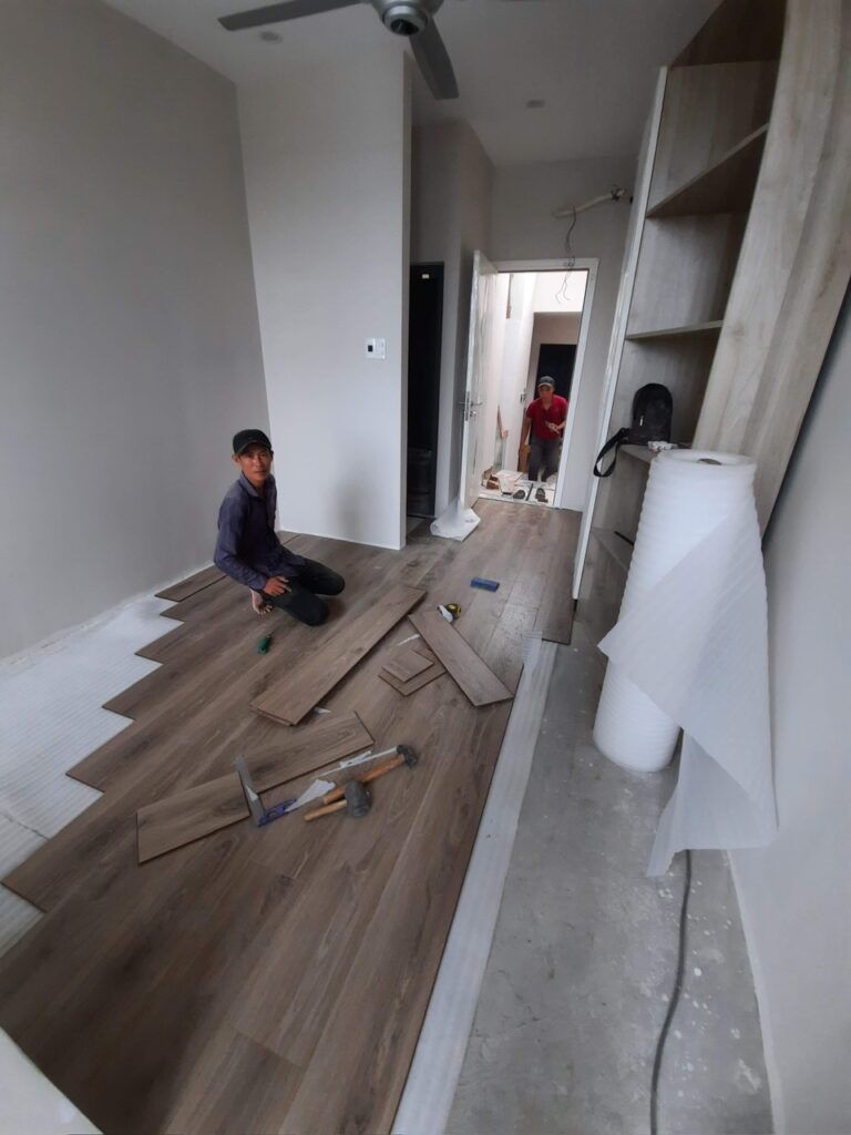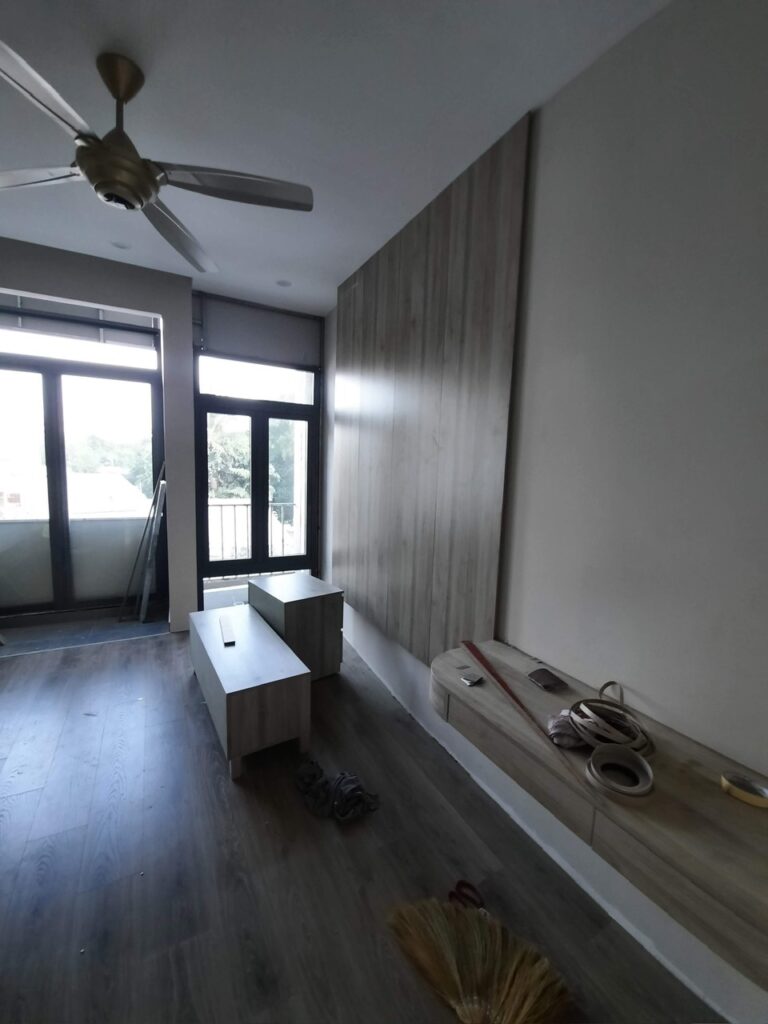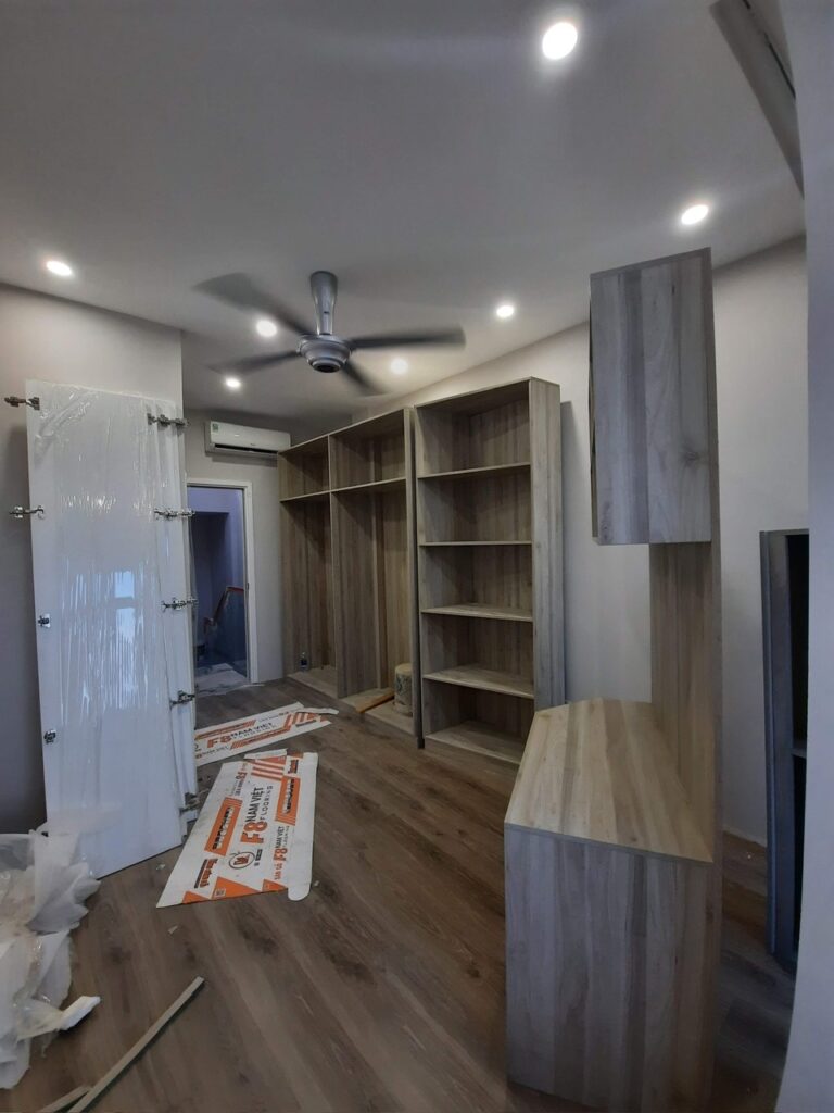 Công trình Thủ Đức Thời gian hoàn thành 60 ngày gồm xây dựng và nội thất: tủ áo, giường, bếp, vách, ti vi, cầu thang, lavabo.